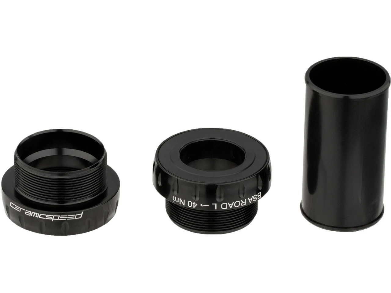 Herstellernummern:black:101307red:101309Lieferumfang:1 x Lagerschale CeramicSpeed BSA rechts mit Keramik-Lager1 x Lagerschale CeramicSpeed BSA links mit Keramik-Lager1 x Innenlagerhülse1 x Fett CeramicSpeed2 x Staubkappe mit integriertem Spacer1 x Aufkleberbogen