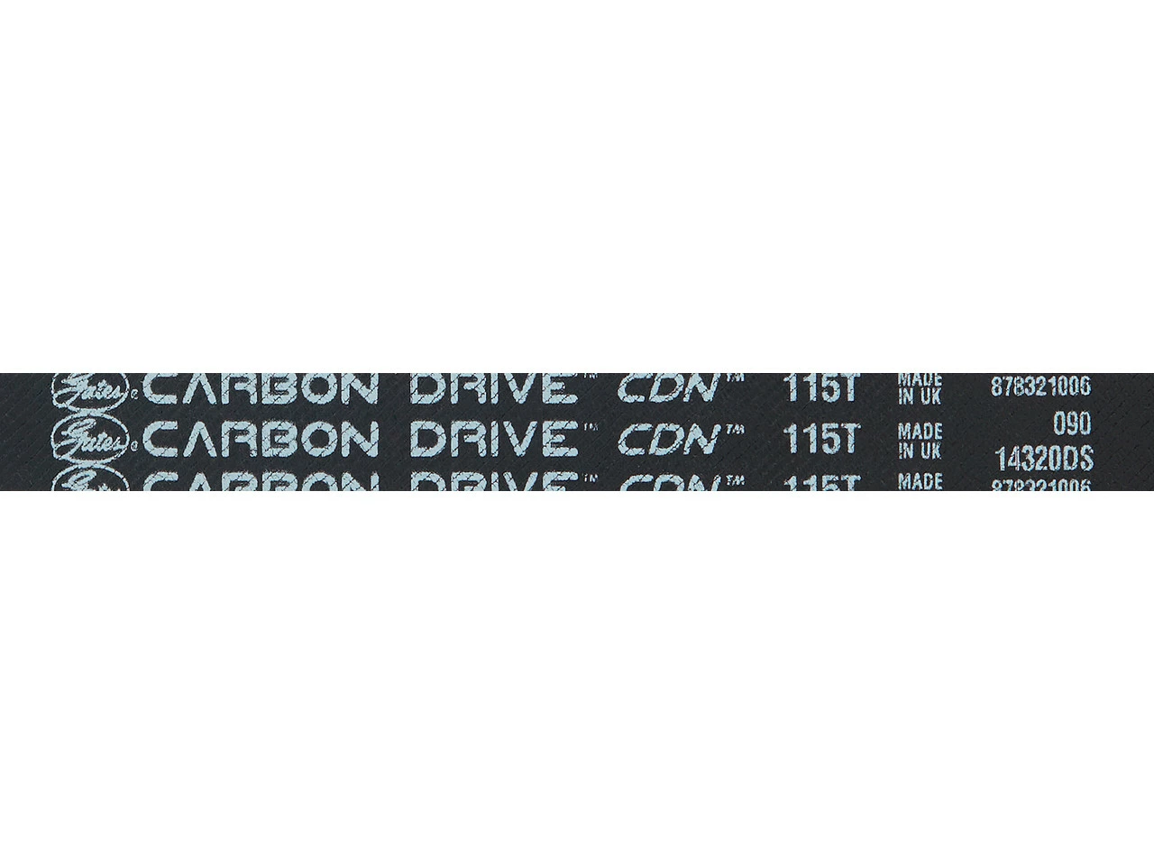 Der CDN Riemen von Gates ist die richtige Wahl für Citybiker. Er ist 12 mm breit und besteht aus starken Carbonfasersträngen, einem elastischen Polymerkörper sowie einer Laufseite aus Nylon.