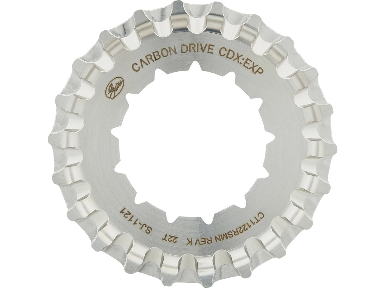Spezifikationen:Einsatzbereich:Touring & Trekking, Cross CountryBefestigung:Rohloff SplineZähne:19 Z, 20 Z, 22 ZTechnische Daten:Breite der Zähne:12 mmZahnteilung:11 mmDicke der Riemenscheibe an der Aufnahme:2,0 mmVersatz:1,3 mm (Montagefläche), 2,3 mm (Mittellinie)Material:EdelstahlKompatibilität:Rohloff Speedhub 500/14Rohloff Speedhub 500/14 XLfür die Montage ist der Rohloff Splined Carrier L zwingend erforderlichVerwendung eines Snubber zwingend vorgeschrieben (verhindert ein Überspringen des Riemens)Features:CDX:EXP-Niveau: High-End-Variante für hohe Belastungen und beste Performance plus 25 % zusätzliche Abnutzungsoberflächegeeignet für Schlamm, Sand, Schnee und Eis sowie sämtliche Straßenmittlere Führungsnut (CenterTrack)für wartungsarme Fahrten über extreme Entfernungen auf nahezu jedem TerrainTechnologie:Gates Carbon Drive System