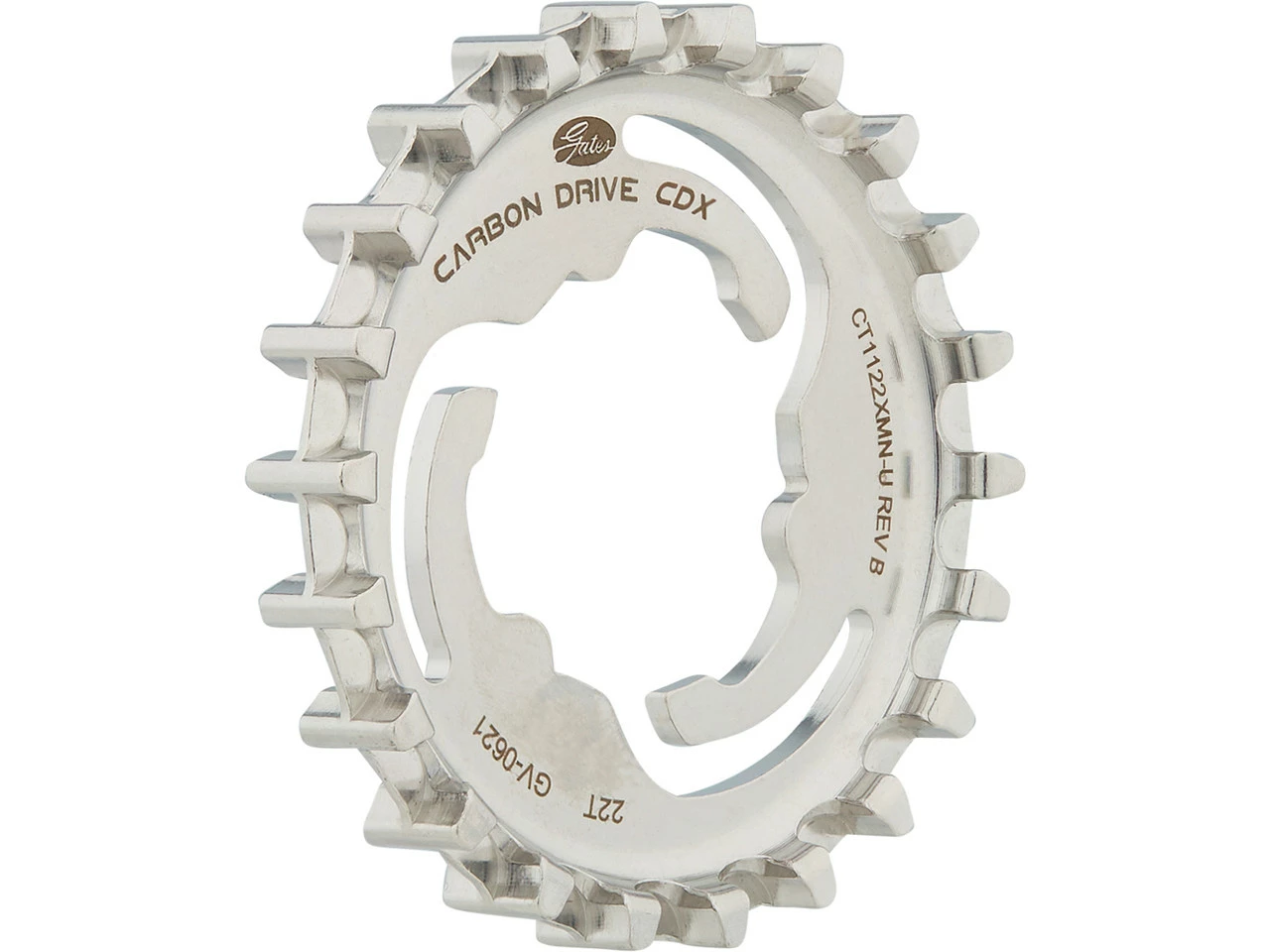 Features:CDX-Niveau: High-End-Variante für hohe Belastungen und beste Performancegeeignet für Schlamm, Sand, Schnee und Eis sowie sämtliche Straßenmittlere Führungsnut (CenterTrack)hohe Laufleistungrobuster EdelstahlSureFit-Ritzeldesign: flexibles Interface für 3-Nocken-Aufnahme, größere Montagetoleranzmit 2,7 mm Offset für eine Riemenlinie von 45,5 mm bei Alfine / Nexus Nabenschaltungen (Unified Beltline)Technologie:Gates Carbon Drive System
