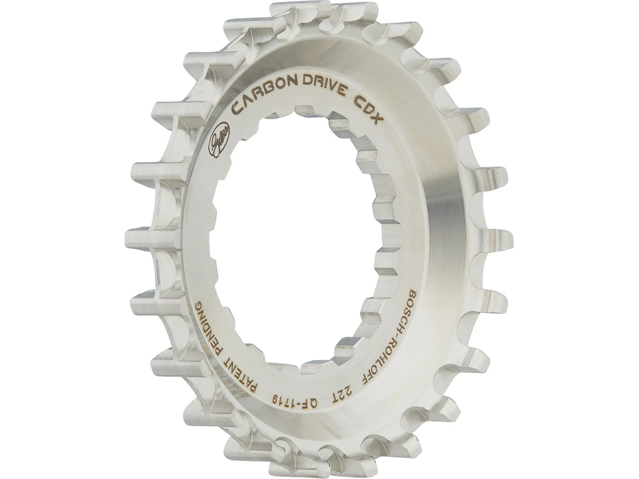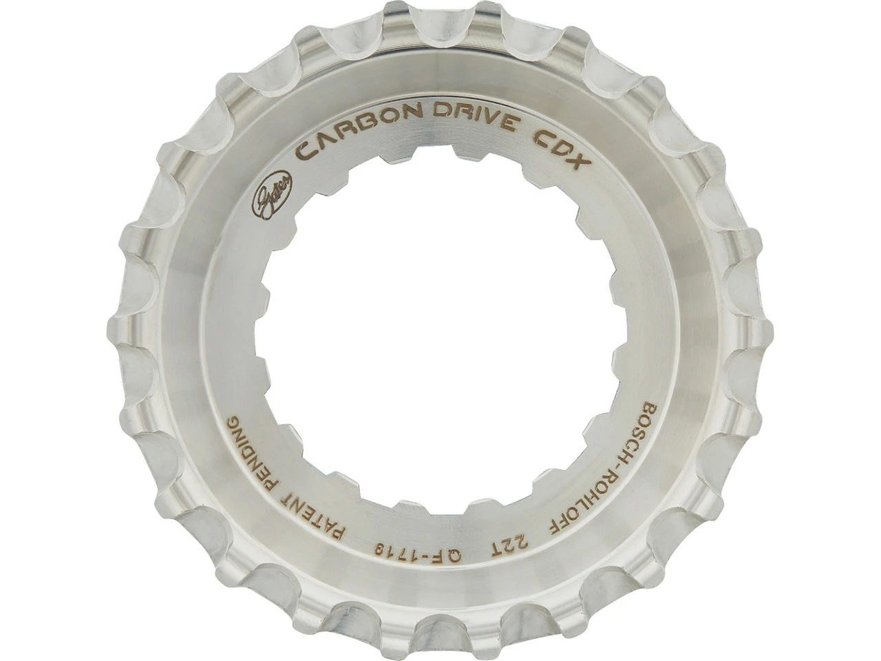 Spezifikationen:Einsatzbereich:Touring & Trekking, Cross Country, All MountainBefestigung:Direktaufnahme an Bosch Gen2-MittelmotorZähne:22 ZTechnische Daten:Breite der Zähne:11 mmZahnteilung:11 mmRiemenlinie:54,7 mmDicke der Riemenscheibe an der Aufnahme:4,5 mmVersatz:8,2 mm (Montagefläche), 6,0 mm (Mittellinie)Außendurchmesser:75,3 mmMaterial:EdelstahlKompatibilität:Bosch Gen2 Performance LineBosch Gen2 Performance Line CXnur geeignet für Rohloff Speedhub 500/14 mit 135 mm oder 142 mm Einbaubreite aufgrund der spezifischen KettenlinieVerwendung eines Snubber zwingend vorgeschrieben (verhindert ein Überspringen des Riemens)Features:CDX-Niveau: High-End-Variante für hohe Belastungen und beste Performancegeeignet für Schlamm, Sand, Schnee und Eis sowie sämtliche Straßenmittlere Führungsnut (CenterTrack)hohe Laufleistungrobuster EdelstahlTechnologie:Gates Carbon Drive System