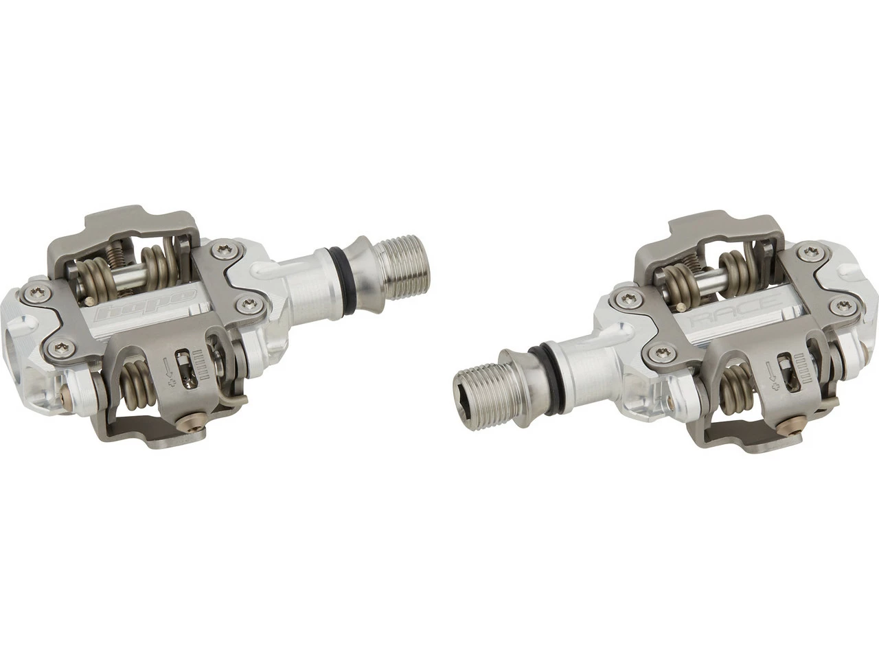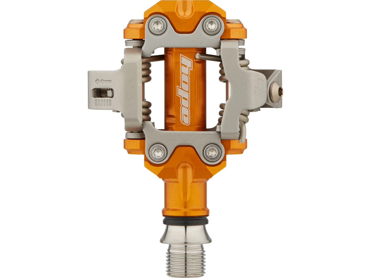 Spezifikationen:Einsatzbereich:Cross CountryAusführung:KlickpedalePedalsystem:HopeMontage Schuhplatte:2-LochTechnische Daten:Material Pedalkörper:AluminiumMaterial Achse:TitanLagerung:PatronenlagerBewegungsfreiheit:4° (No. 4), 5° (No. 5)Auslösewinkel:12° (No. 4), 13° (No. 5)Empfohlene Schuhplatten:Hope CleatsFeatures:rennorientierte Cross-Country-Klickpedale mit stabilen Titanachsen und CNC-gefrästen AluminiumkörpernHope-eigenes Dual-Klick-System für festen Halt und gleichmäßiges Ein- und Ausklickverhaltenstufenlos einstellbare Federkraftweiter Winkel für besonders flaches oder steiles Einklickenzwei Paar Cleats mit 4° oder 5° Float und unterschiedlichem Auslösewinkel2 mm seitlicher FloatCleats und Klickmechanismus aus rostfreiem Edelstahlwartungsarm und komplett zerlegbarHerstellernummer:PDURC