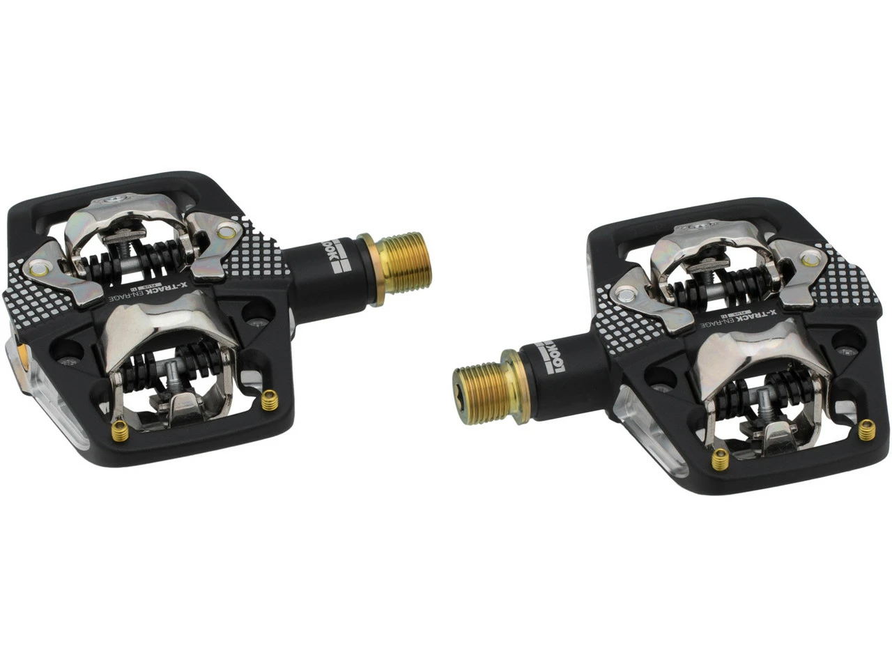 Spezifikationen:Einsatzbereich:Enduro, All Mountain, GravelAusführung:KlickpedalePedalsystem:SPDMontage Schuhplatte:2-LochTechnische Daten:Material Pedalkörper:AluminiumMaterial Achse:TitanDichtungen:doppeltBauhöhe:16,8 mmMaße [B]:67 mmBewegungsfreiheit:6°Auslösekraft:6 – 14 NmAuslösewinkel:13°Empfohlene Schuhplatten:X-Track Cleats, X-Track Easy CleatsDistanz Pedalmitte/Kurbelarm:55 mmFeatures:für die extremsten Bedingungen entwickeltäußerst robuster Pedalkörper aus geschmiedetem AluminiumAchse aus Titan mit exklusivem Gold-Finish für verbesserte Steifigkeit664 mm² AufstandsflächeSPD-KompatibilitätHerstellernummer:18233