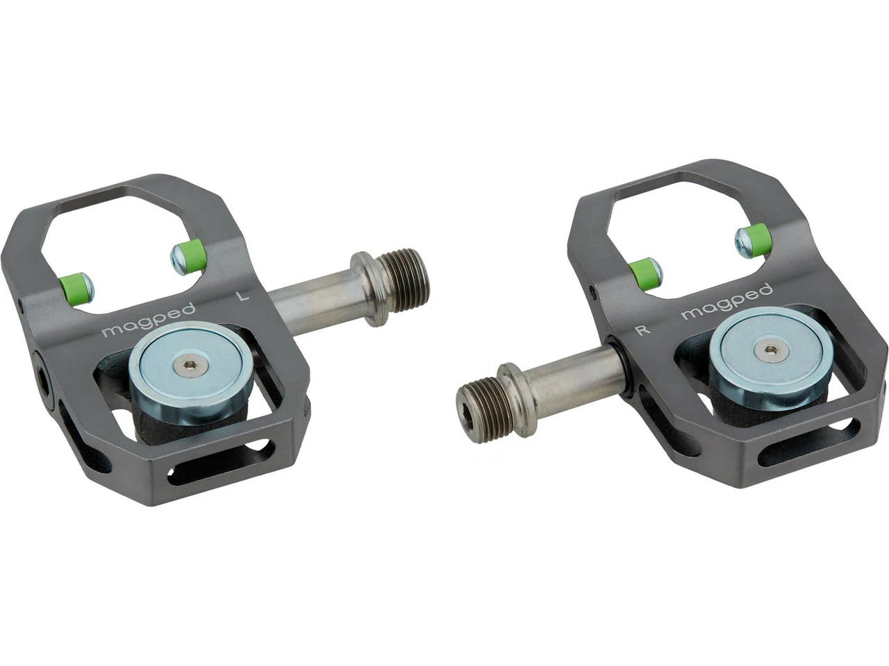 Spezifikationen:Einsatzbereich:RoadAusführung:MagnetpedalePedalsystem:magped RoadMontage Schuhplatte:3-LochTechnische Daten:Material Pedalkörper:AluminiumMaterial Achse:TitanAuslösekraft:200 NBauhöhe:18 mmMaße (L x B):89 mm x 54 mmempfohlene Schuhplatten:magped Schuhplatten Road MetallFeatures:magnetische Rennradpedale für sicheres und einfaches Ablösen Deiner Füßegeringeres Sturz- und Verletzungsrisiko gegenüber herkömmlichen Klickpedalennur 270 g Gewicht durch Titanachse und CNC-gefrästes Aluminiumgeringfügige Anpassung der Cleat-Position zur GelenkschonungMagnetstärke 200 N mit 20 kg Zugkraft, empfohlen ab 75 kg Körpergewichtdank ausbalancierter Magnetstärke, hohe Zugkraft bei einfacher Ablösbarkeitin der Funktion weniger durch Schmutz beeinträchtigt als gewöhnliche Schuhplattenhöhenverstellbare MagneteHerstellernummer:ROAD