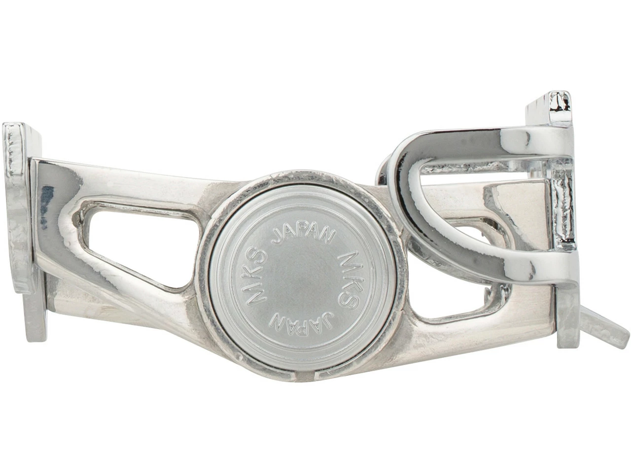 Die NJS-zugelassenen SUPREME Pedale von MKS sind speziell für Keirin-Fahrer entwickelt und optimiert worden, eignen sich aber auch hervorragend für klassische Radrennen auf der Straße. Durch die zweifach gelagerte Achse laufen sie außerordentlich reibungslos. Die spiegelblank polierten Pedale, die mit Pedalhaken nachgerüstet werden können, machen auch optisch einiges her, besonders an schlanken Stahlrahmen-Bikes.