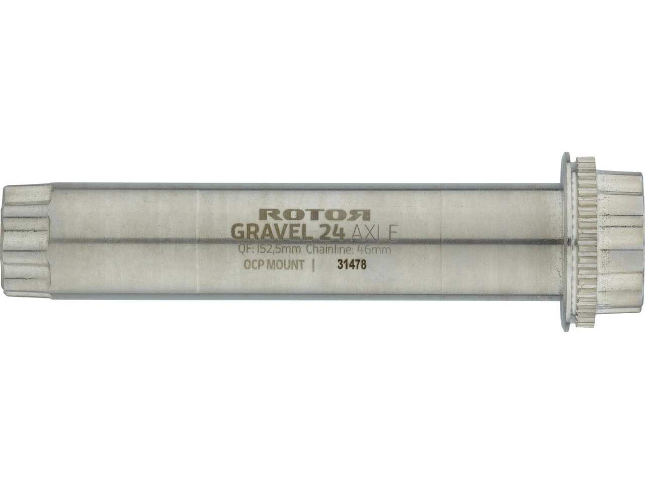 Die Rotor Gravel-Kurbelachse für die ALDHU bzw. VEGAST 24 Kurbelarme und Innenlager nach Shimano-Standard eignet sich für Gravelbikes und Rennräder, die eine Kettenlinie von um die 46 mm aufweisen. Das ist etwa bei der Shimano Gravel-Schaltung GRX oder bei SRAM-Wide-Antrieben der Fall. Der von der Gravel-Achse erzeugte Q-Faktor liegt bei 152,5 mm. Die Achse besteht aus Stahl und weist die spezielle OCP-Mount-Verzahnung auf, welche bei Verwendung eines passenden Spiders die Feineinstellung ovaler Kettenblätter in 1-Grad-Schritten erlaubt.