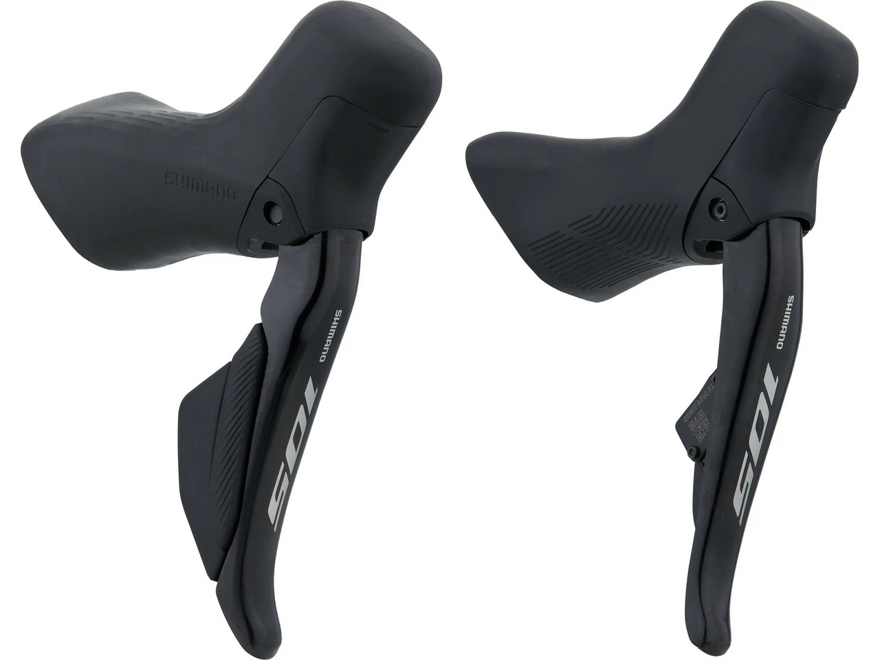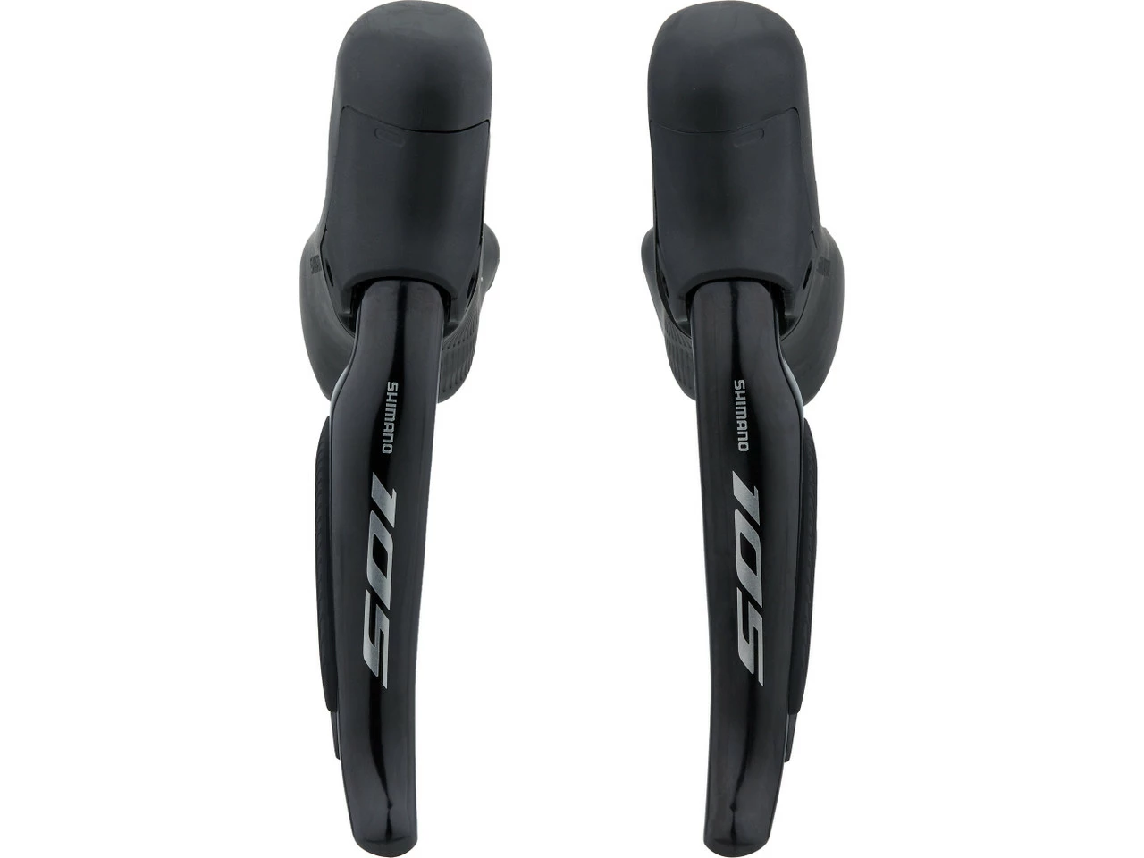 Die 105 ST-R7170 Di2 Schalt-/Bremsgriffe haben nach oben verlängerte Griffhörnchen, an denen sie sich sehr ergonomisch greifen lassen. Zudem passt Du die Griffweite mithilfe eines 2-mm-Innensechskantschlüssels ganz einfach an Deine Handgröße an. Dank des vergrößerten Bremsbereichs und der sensiblen Hebelwirkung hast Du volle Kontrolle über alle Bremsvorgänge, wobei der Druckpunkt ebenfalls einstellbar ist. Dabei wiegen die Schalt-/Bremsgriffe nur etwa 30 Gramm pro Paar mehr als das Ultegra-Modell. Natürlich kommt, wie zuvor bei Dura-Ace und Ultegra, die runderneuerte Di2-Plattform zum Einsatz. Das heißt, die ST-R7170 kommunizieren über ein Drahtlos-Protokoll mit dem Schaltwerk, welches wiederum mit dem Akku und indirekt mit dem Umwerfer verkabelt ist. Das bedeutet nicht nur blitzschnelle, hochpräzise Schaltvorgänge auf Knopfdruck. Durch den Verzicht auf Kabel am Cockpit sieht Dein Bike auch aufgeräumter aus, die Montage fällt Dir leichter und die Schaltung ist an dieser Stelle unempfindlich gegenüber Verschmutzung. Betrieben werden die STIs über Knopfzellen, die mehrere Jahre halten und von Dir selbst bei Bedarf ausgetauscht werden. Die Bremshebel bestehen aus leichtem Aluminium, die Griffkörper sind aus langlebigem Kunststoff gefertigt.
