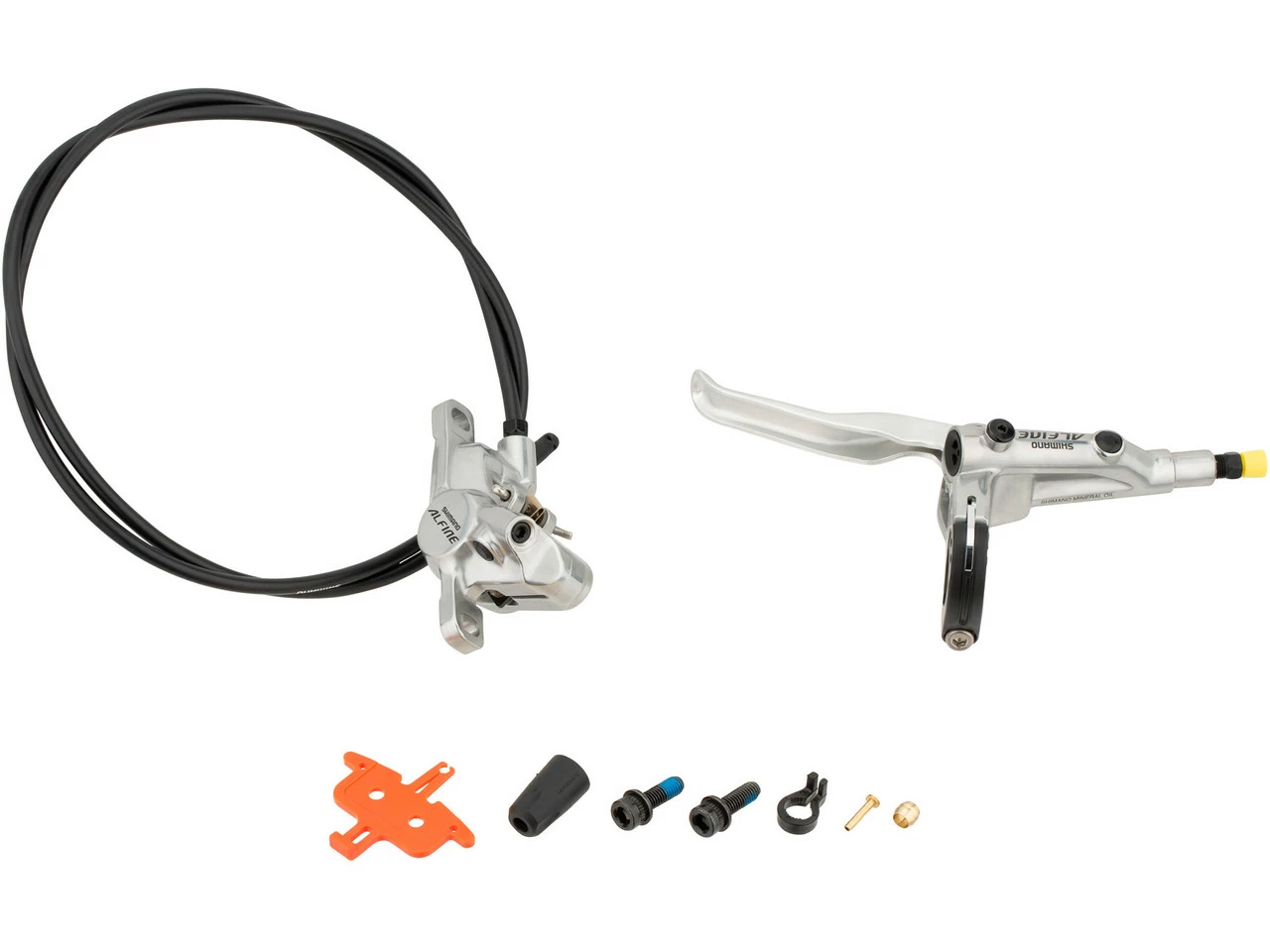 Herstellernummern:schwarz / VR:E-S7000JLFPRA100schwarz / HR:E-S7000JRRXRA170silber / VR:E-S7000JNFPRA100silber / HR:E-S7000JTRXRA170Lieferumfang:1 x Scheibenbremse Shimano Alfine BR-S7000 + BL-S7000, VR oder HR1 x Bremsleitung Shimano SM-BH59-JK-SS 1000 mm (VR) oder 1700 mm (HR)1 Paar Bremsbeläge Shimano Resin1 x Insertpin1 x Olive2 x Befestigungsschraube Bremssattelmontagefertig, befüllt, nach der Montage ist eine Entlüftung zu empfehlenDirekt mitbestellen:Adapter für PM-Nichtdirektmontage und IS-MontageWerkzeug TL-BH61 zur Insertpin-MontageEntlüftungsdistanzstück Y-8J712100