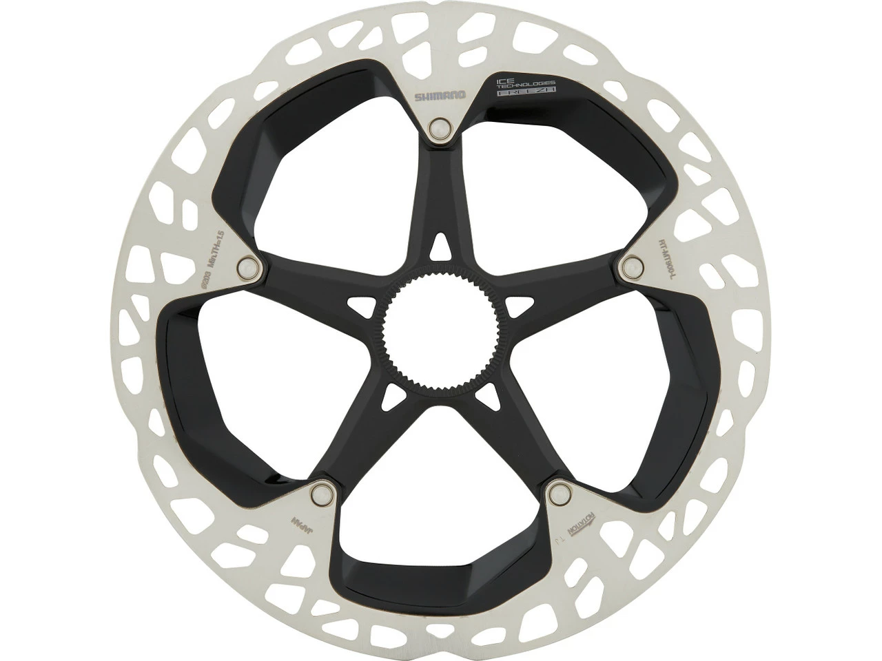 Die RT-MT900 Center Lock Bremsscheibe aus der XTR-Serie wird inklusive einem intern verzahnten Magnet-Lockring für den Shimano EW-SS302 Geschwindigkeitssensor ausgeliefert. Somit eignet sie sich für E-Bikes, die mit DU-EP800, EP801 oder EP600 Motor ausgerüstet sind, und ist nur für den Einsatz am Hinterrad gedacht. Dank Ice Technologies FREEZA Wärmeableitung werden die beim Bremsen auftretenden Temperaturen deutlich reduziert, woraus eine konsistentere Bremsleistung folgt. Auch die Lebensdauer der Bremsbeläge verlängert sich. Die bewährte Sandwich-Konstruktion der RT-MT900 mit Aluminium-Kern zwischen zwei Edelstahlschichten gewährleistet effizienten Hitzeabgang über die integrierten Kühlrippen, welche anders als bei der XT-Version schwarz lackiert sind. Außerdem besteht bei Rotorgröße 203 mm ein erheblicher Gewichtsvorteil.