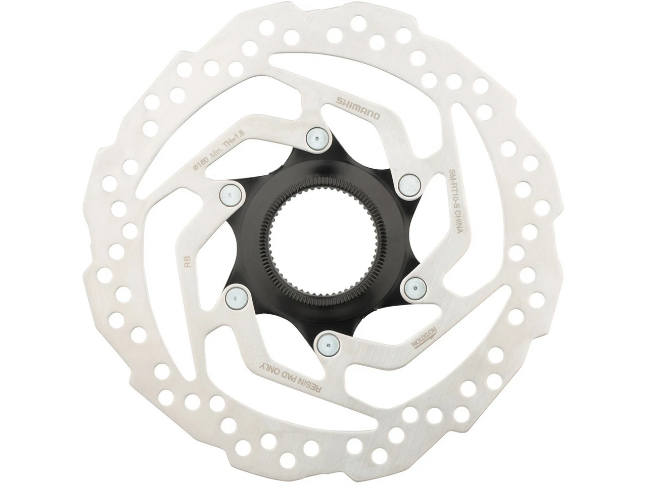 Die Shimano SM-RT10 Bremsscheibe verfügt im Gegensatz zu ihrem Vorgänger über einen schwarzen Lockring. Dieser zeichnet sich durch eine besondere Konstruktion mit Innen- und Außenverzahnung aus. Zum Festziehen und Lösen ist je nachdem das Werkzeug TL-LR11 oder TL-FC36 erforderlich. Verwende die SM-RT10 Bremsscheiben nur mit organischen Bremsbelägen.