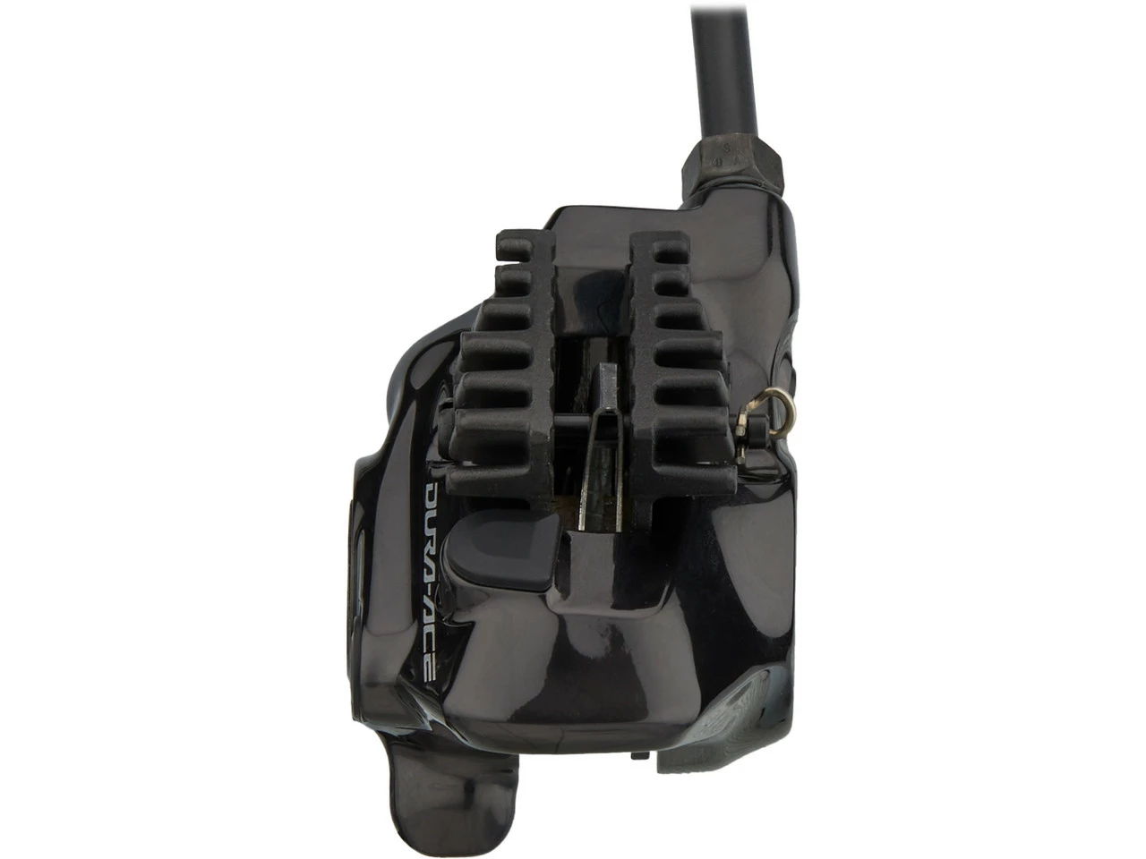 Der Dura-Ace Bremssattel BR-R9270 wurde einteilig in Mono-Body-Bauweise konstruiert. Das spart gegenüber der Ultegra-Variante hinten wie vorne über 20 Gramm Gewicht und erhöht die Steifigkeit zusätzlich. Die Bremsbeläge haben mehr Freiraum als beim Vorgängermodell, wodurch ein Schleifen der Bremsscheibe vermieden und die Geräuschentwicklung reduziert wird. Die Bremsleistung der zwei Kunststoffkolben ist auf den Wettkampfeinsatz abgestimmt. Außerdem punktet der BR-R9270 dank One-Way-Bleeding-Technologie mit einem einfachen Entlüftungsvorgang.