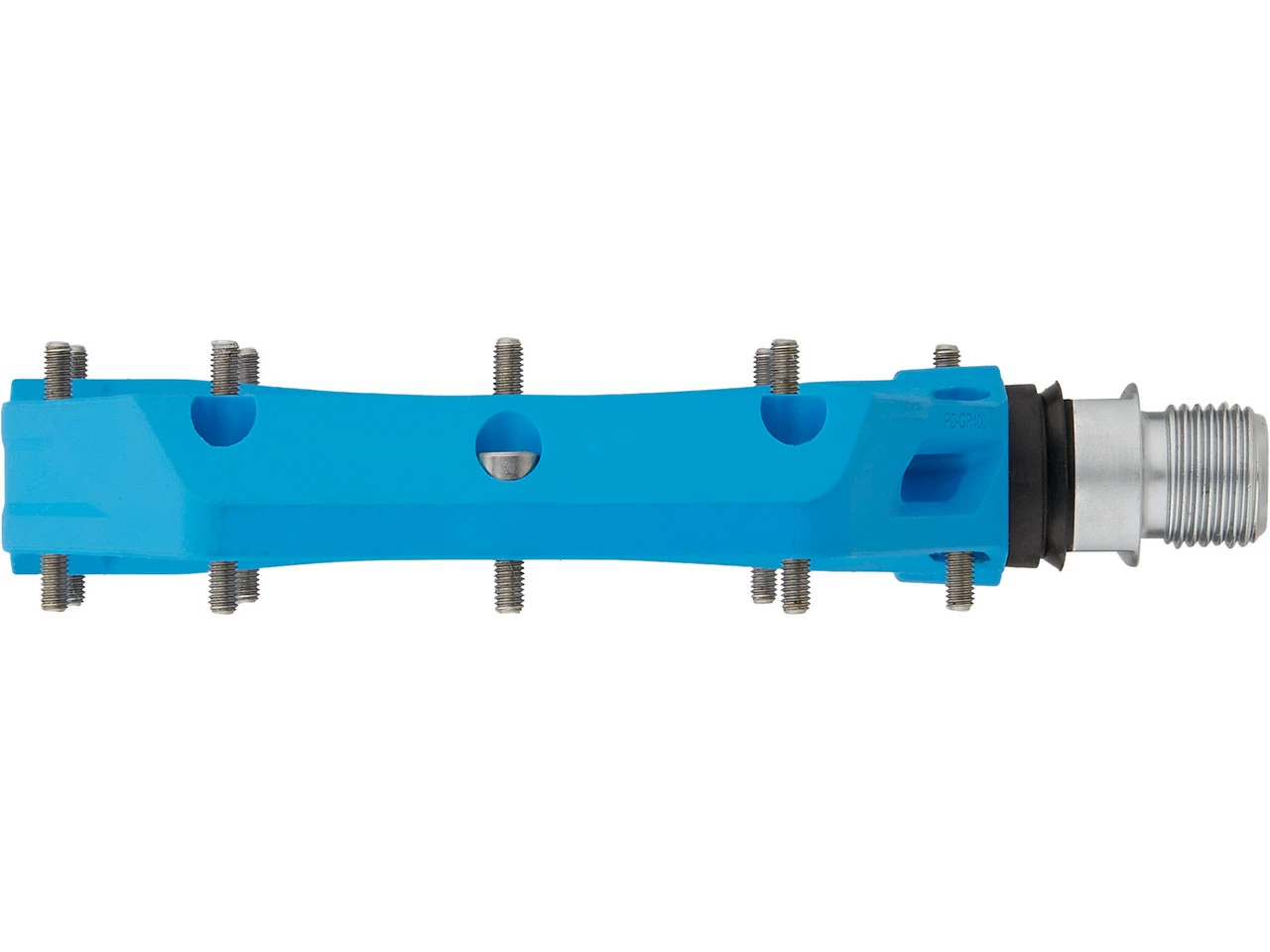 Die PD-GR400 Plattformpedale von Shimano für entspanntes Trail- und All-Mountain-Riding bringen pro Paar etwa 130 Gramm weniger auf die Waage als das Modell PD-GR500. Sie bieten dem Fuß stabilen und sicheren Halt, der durch die neun austauschbaren Pins auf jeder Seite noch verstärkt wird. Der Pedalkörper besteht aus Kunststoff, ist maximal 16 mm dick und hat eine Aufstandsfläche von 101 x 96 mm. Die Achse ist über zwei Buchsen gleitgelagert und abgedichtet. Am besten Du kombinierst das PD-GR400 Pedal mit den GR-Schuhen von Shimano.