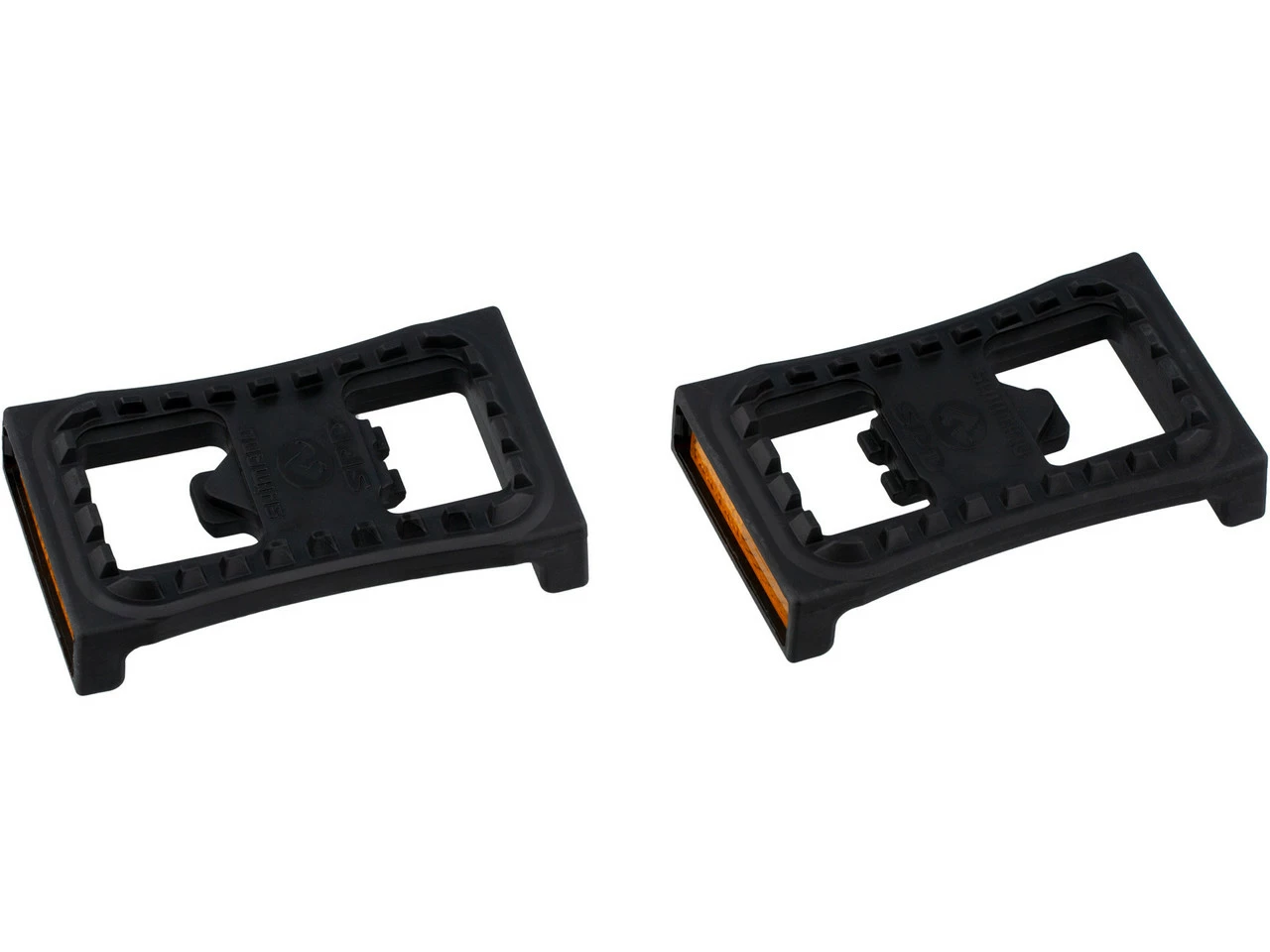 Der Shimano Reflektor SM-PD22 ist ein Nachrüstteil für Shimano MTB-Klickpedale wie XTR PD-M970, XTR PD-M9100 mit kürzerer Achse, XT PD-M770, PD-M540, PD-M520 und einige weitere. Es werden zwei Pedalplatten geliefert, an denen die Reflektoren befestigt sind. So machst Du Deine Pedale ganz schnell fit für den Straßenverkehr.