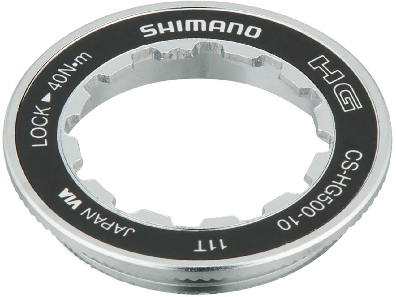Den Shimano Verschlussring für die CS-HG500-10 10-fach Kassette gibt es in drei Versionen: für Kassetten mit 11-Zähne-Zahnkranz als kleinstem Ritzel außer 11-42 Z, für Kassetten, deren kleinstes Ritzel 12 Zähne aufweist, und für die 11-42 Kassette. Es ist nur der aus Stahl gefertigte Lockring im Lieferumfang.