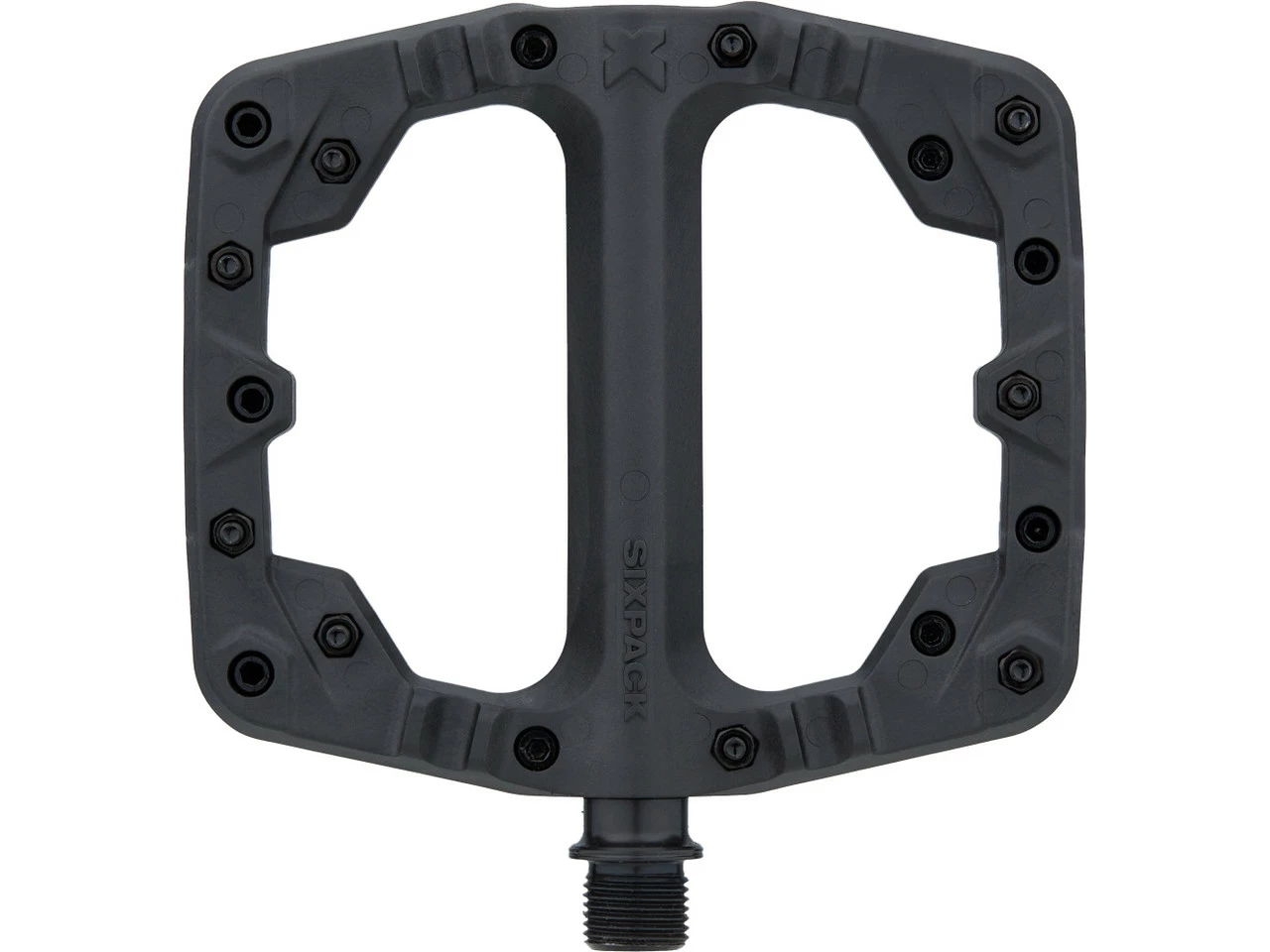 Die Sixpack Racing Millenium CF Plattformpedale aus carbonfaserverstärktem Polyamid sind sehr leicht, haltbar und widerstandsfähig und eignen sich für den Downhill-Einsatz.