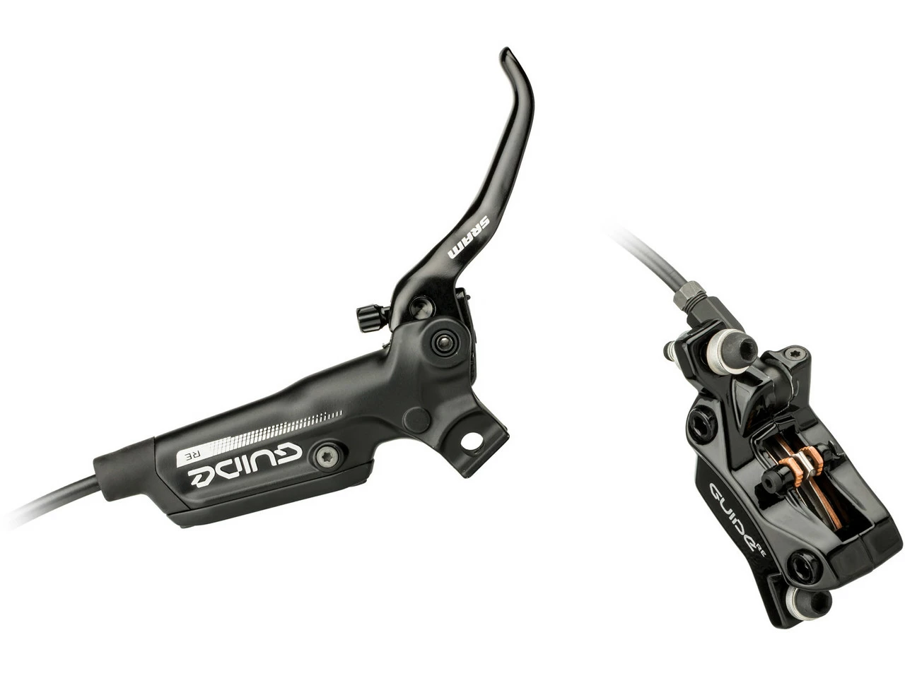 Ausführung: HinterradLänge Bremsleitung: 1800 mmFarbe: Schwarz glänzendHerstellernummer: 00.5018.101.001Lieferumfang:1 x Scheibenbremse SRAM Guide RE, montagefertig befüllt und entlüftet (Vorderrad oder Hinterrad)1 Paar Bremsbeläge SRAM Sintermetall1 x Transportsicherung SRAMinkl. Olive + Insertpininkl. Befestigungsschraubenohne Bremsscheibeohne Adapter