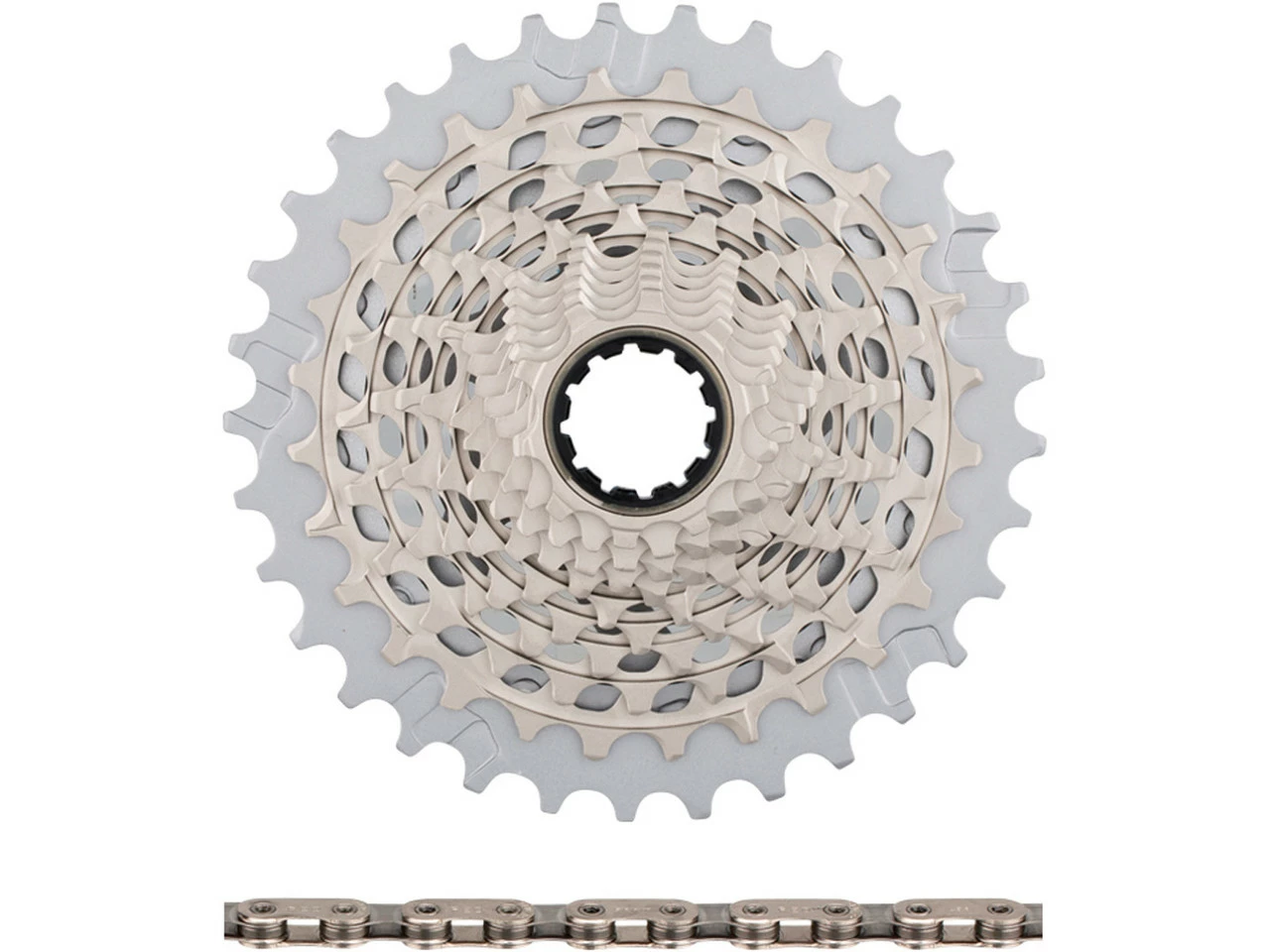 Spezifikationen:Einsatzbereich:RoadSchaltstufen:12-fachAbstufungen:10-26, 10-28, 10-33Material Ritzel:StahlFreilaufkompatibilität:XDRTechnische Daten Kassette:Serie:XG-1270Technische Daten Kette:Gliederzahl:114Verschlussart:Kettenschloss (PowerLock™)Nietentyp:hohl (Hollow Pins)Laufrichtungsgebunden:NeinMaterial:StahlFeatures:Kassette: