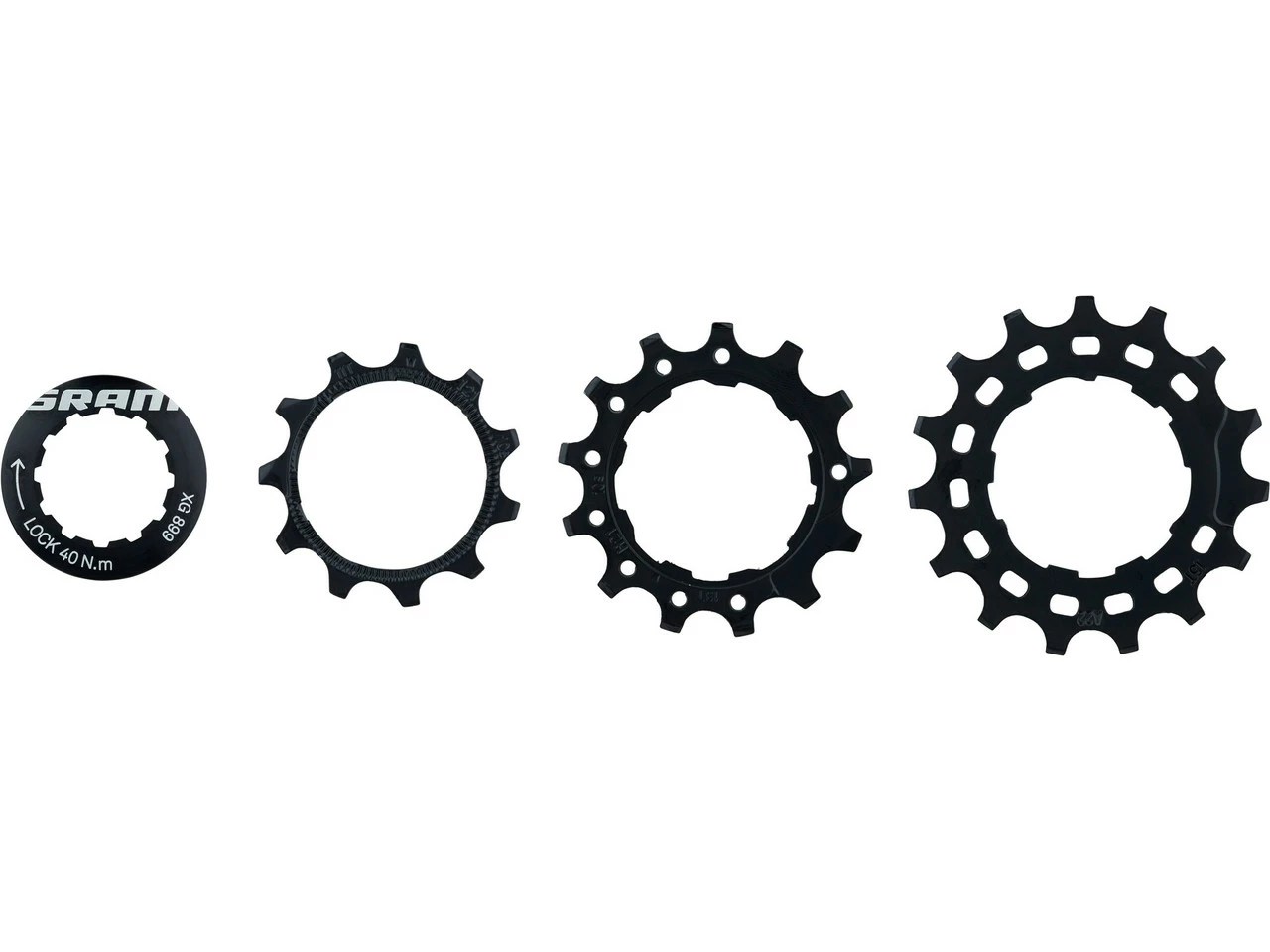 Lieferumfang:3 x Ritzel SRAM für XG-899 E-Block 8-fach1 x Lockring