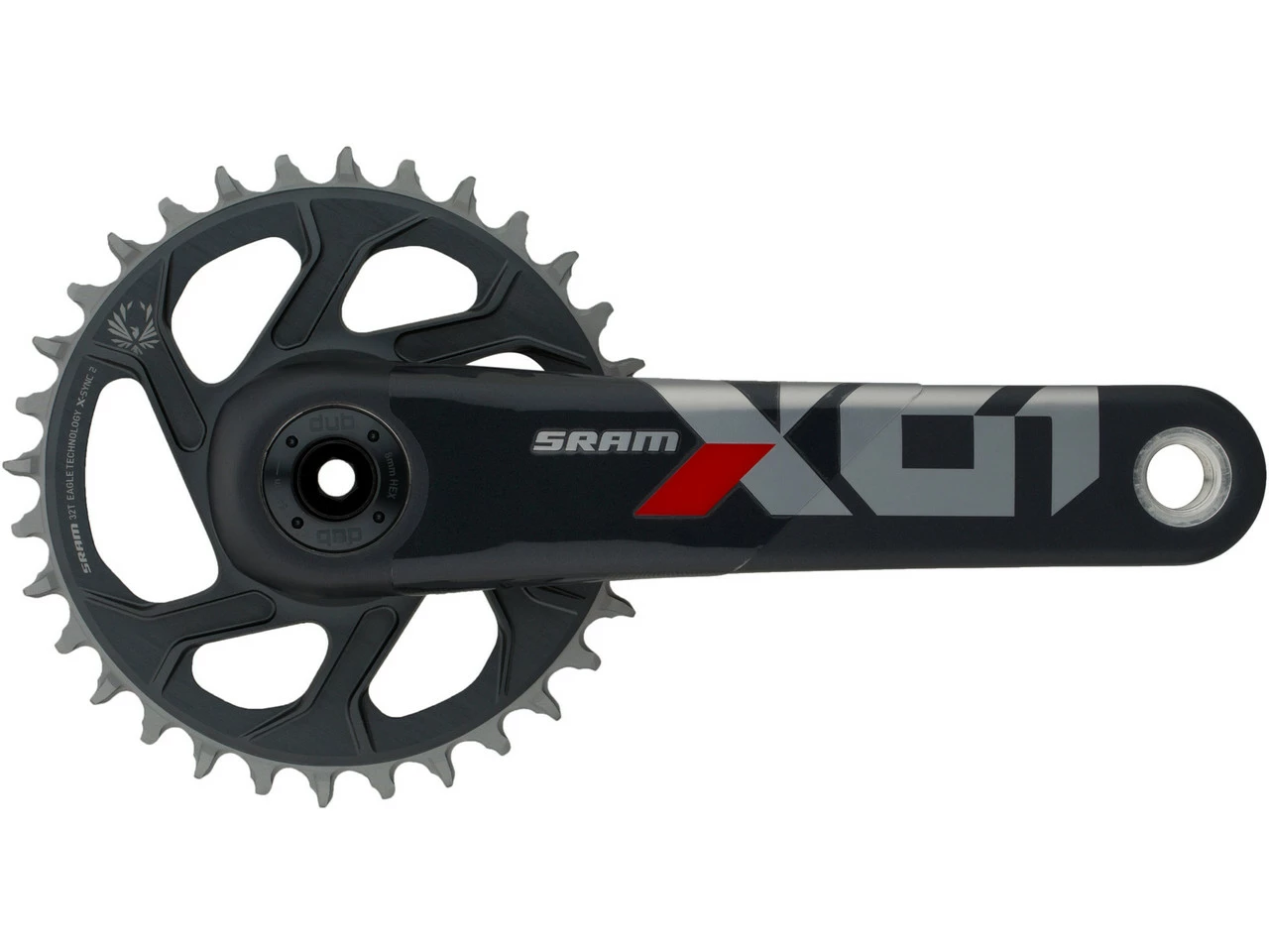 Diese X01 Eagle Kurbelgarnitur ist dank Carbonkurbeln sehr leicht und wurde optimiert für 12-fach-Antriebe an Mountainbikes mit Non-Boost-Einbaubreite. Sie ist herausragend stabil und hochwertig und scheut sich nicht vor dem Enduro-Einsatz. Das präzise gefertigte Kettenblatt überzeugt mit X-Sync-2™-Technologie und Raw-Finish an den Zähnen, wodurch an diesen auch nach längerem Gebrauch keine Abnutzungsspuren erkennbar werden. Dank DUB-Technologie harmoniert die Kurbelgarnitur ideal mit DUB-Innenlagern und erbringt so dauerhaft zuverlässige Leistung. An der Direct-Mount-Aufnahme ist jedes Eagle-Kettenblatt schnell und einfach montiert. Die X01 Eagle Kurbelgarnitur ist konzipiert für alle, die an ihrem Bike keine Kompromisse eingehen wollen.