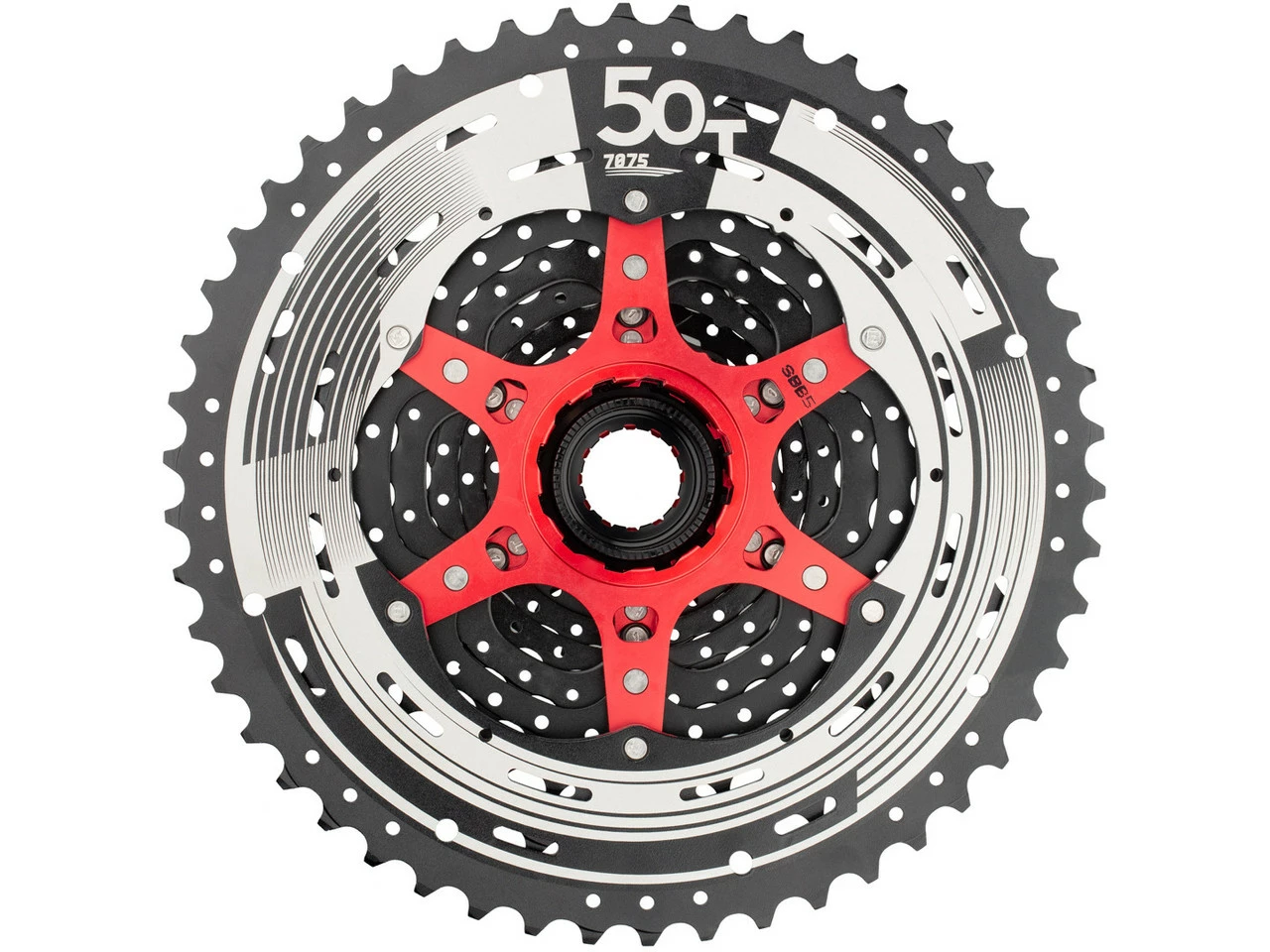 Spezifikationen:Einsatzbereich:Cross Country, All Mountain, EnduroSchaltstufen:12-fachAbstufung:10-50Material Ritzel:Stahl (Hi-Tensile), Aluminium (7075)Freilaufkompatibilität:SRAM XDTechnische Daten:Serie:MZ 12sSpider / Ritzelträger:2 (Aluminium)Empfohlene Kette:12-fachFeatures:Wide Ratio KassetteRitzel 1 bis 10 aus Hi-Tensile-Stahl, Ritzel 11 und 12 aus eloxiertem AluminiumFluid Drive Plus TechnologieLight Weight Holes Design7 Ritzel auf 2 TrägernSpider, Spacer und Verschlussring rot eloxiertAusführungen:10-50: