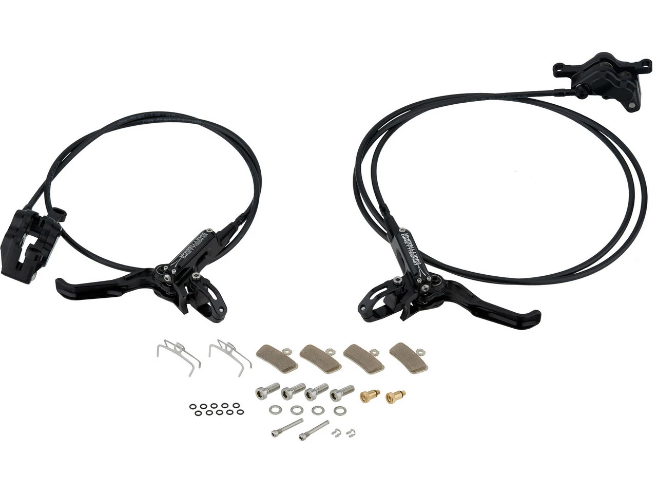 Spezifikationen:Einsatzbereich:Trail, CrossCountry, Marathon, All Mountain, EnduroKolben:4Bremsmontage:Postmount (IS über Adapter)Bremsmedium:MineralölBremsscheibe:ohne (Dächle)Bremshebel:enthaltenBremsentyp:Disc-Brake, hydraulischTechnische Daten:Material Bremshebel:AluminiumMaterial Bremshebelgehäuse:AluminiumMaterial Bremssattel:AluminiumBremsbelag:POWER+ organischHebelmontage:rechts oder linksAnpassung:GriffweiteneinstellungKlemmschelle:geteiltLeitungslänge Vorderrad:900 mmLeitungslänge Hinterrad:1700 mmFeatures:Vierkolben-Bremssattel mit automatischer Belagsnachstellungfadingfreie, geräuscharme Trickstuff NG-BelägeHochdruck-Kevlar-Leitungo