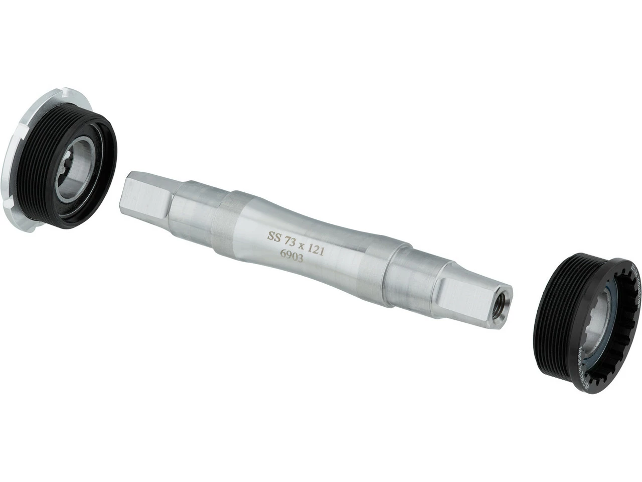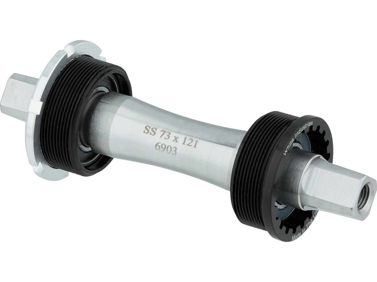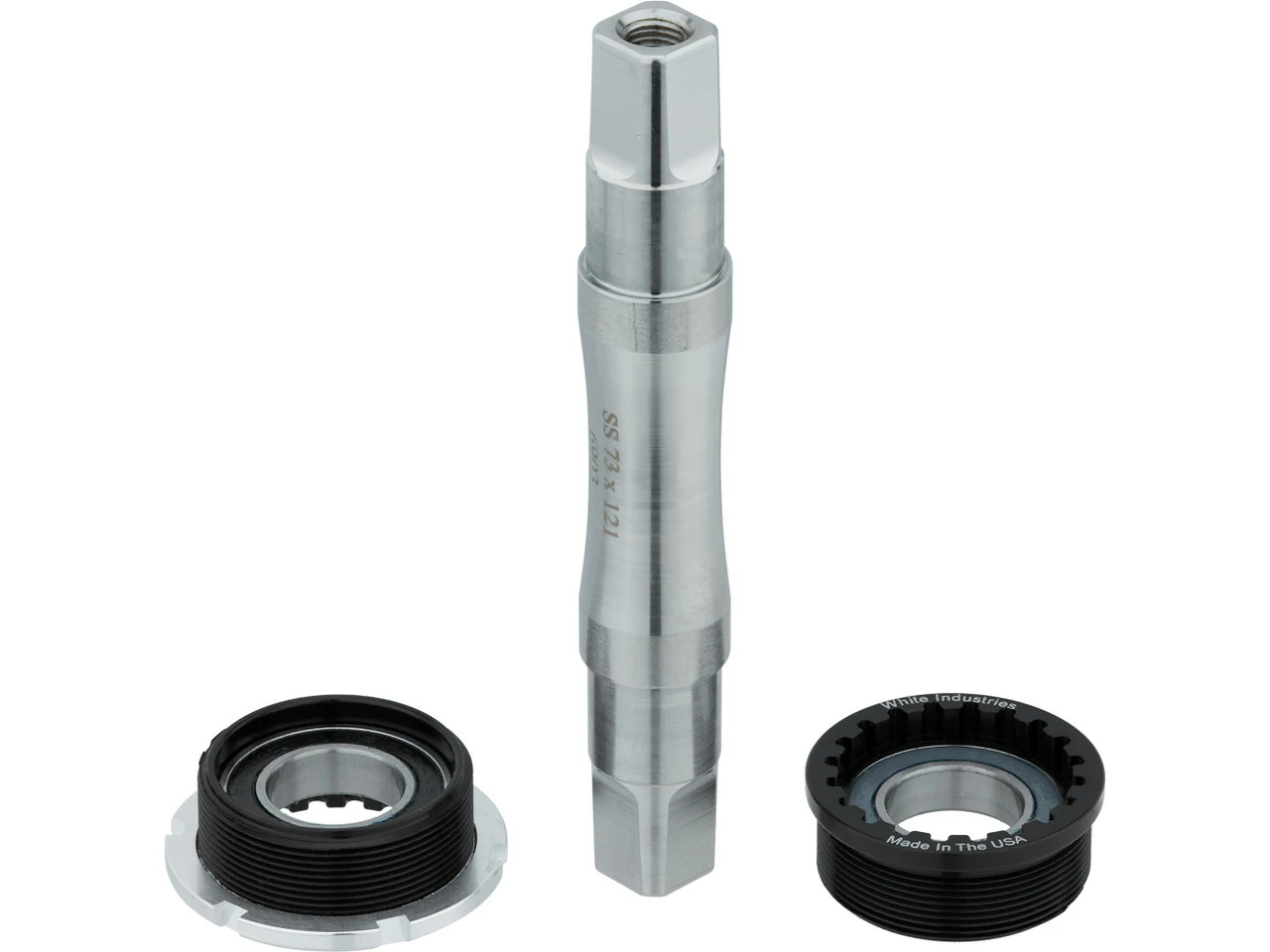 Klassisches JIS Vierkant Innenlager von White Industries mit Achse aus Edelstahl und einstellbaren zweireihigen Schrägkugellagern.