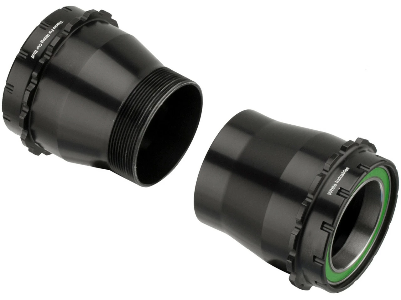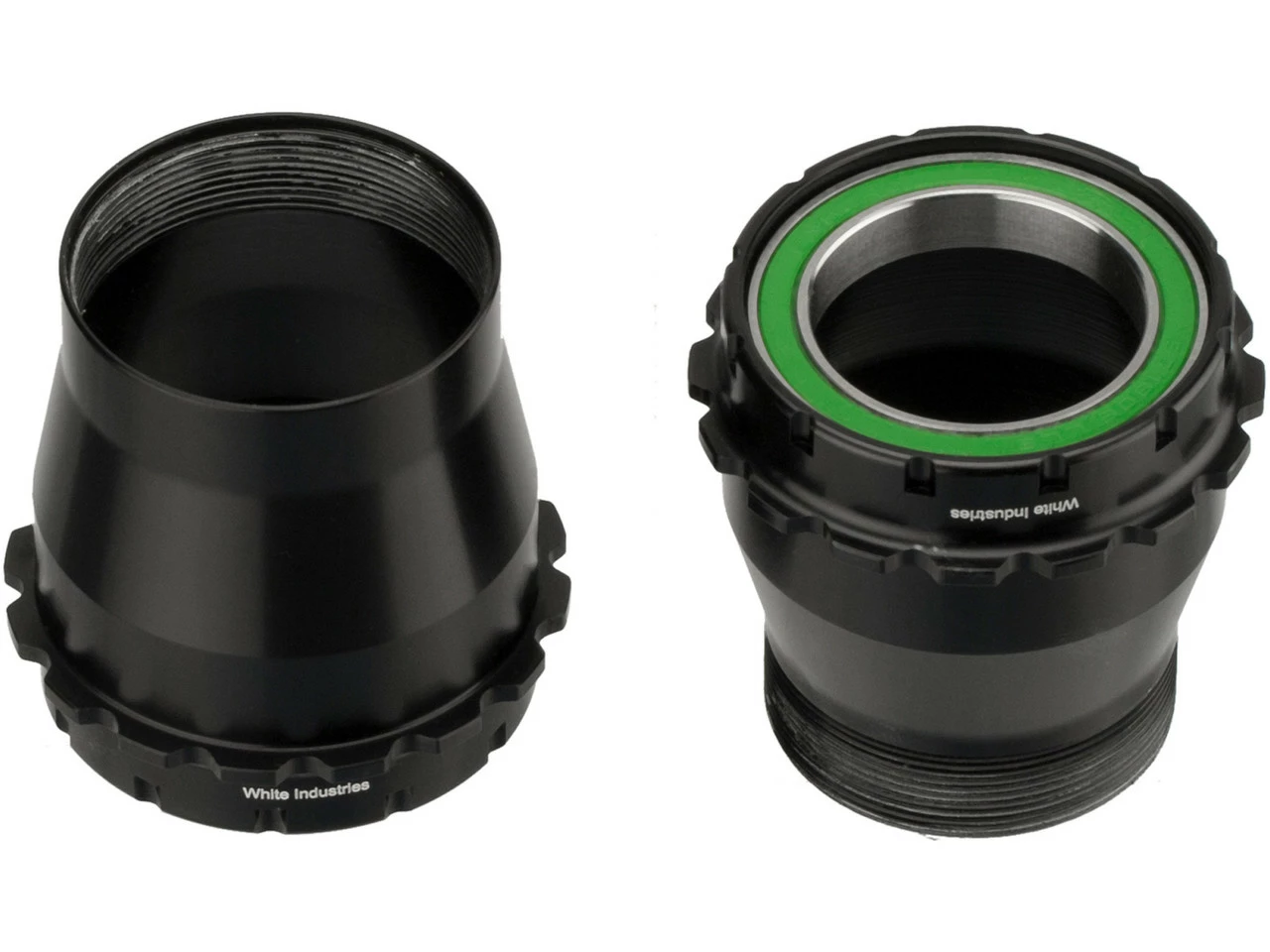 Die beiden Lagerschalen des PF30 External Innenlager von White Industries mit außenliegenden Lagern werden miteinander verschraubt, somit gehören lose Innenlagerschalen der Vergangenheit an. Passend für Rahmen mit 46 x 68/73 mm Pressfit-Innenlagergehäuse in Kombination mit Kurbeln mit 30 mm Achsdurchmesser.