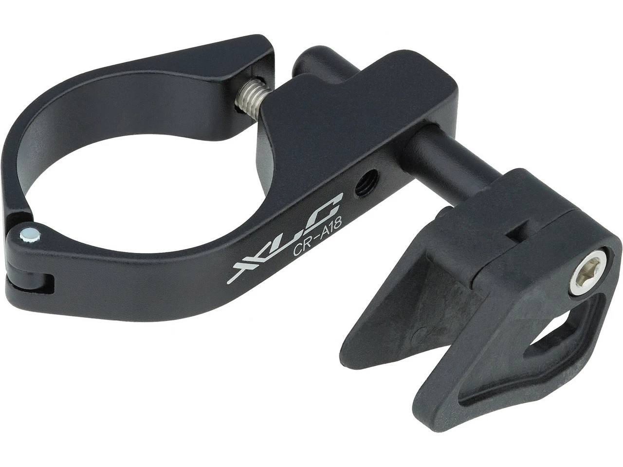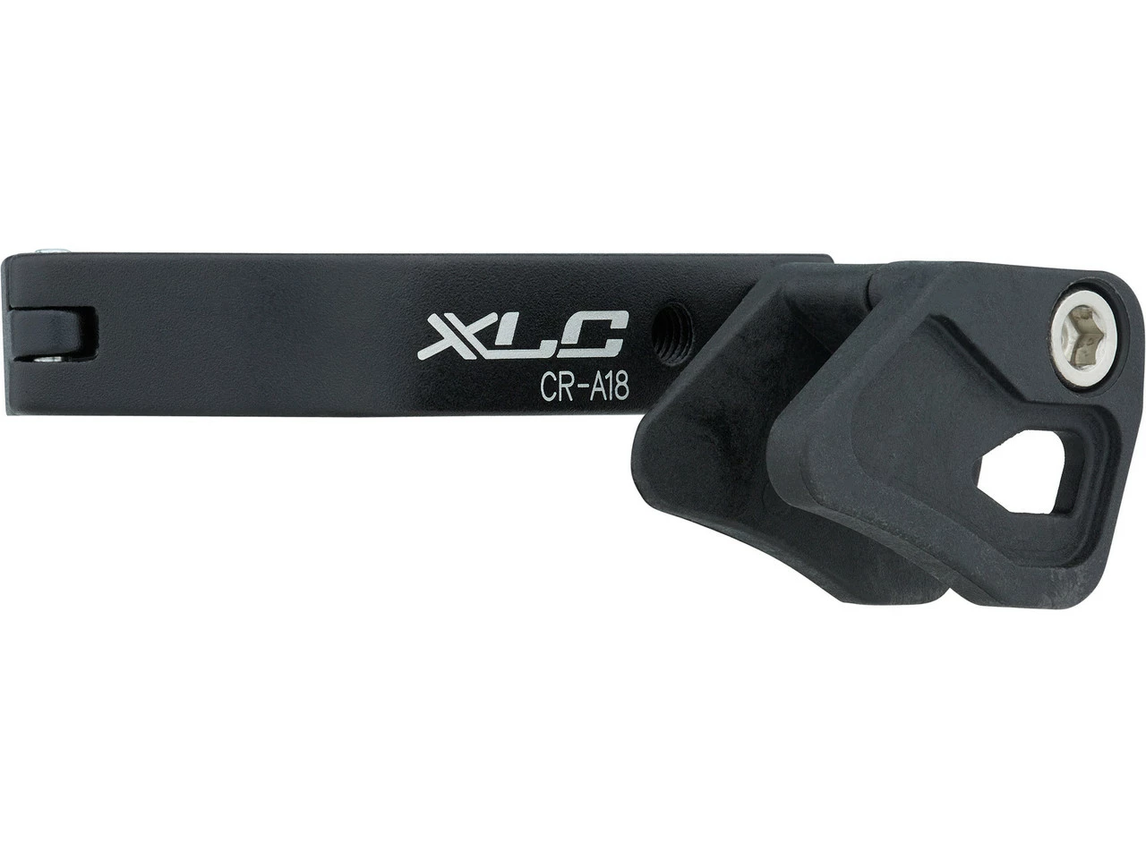 CR-A18 ist eine nur 44 Gramm leichte Kettenführung aus Aluminium von XLC. Sie eignet sich für Mountainbikes mit 1×9-fach, 1×10-fach oder 1×11-fach Schaltung und wird über eine Schelle am Sitzrohr montiert. Die Kettenführung wirkt einem Kettenschlagen und somit einem möglichen Kettenabwurf entgegen.